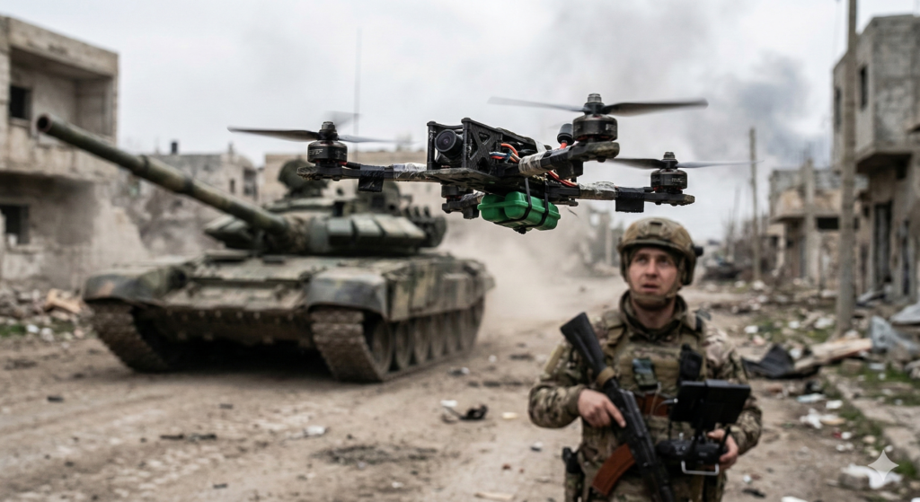 The sheer density of cheap drones in the airspace above modern battlefields has created a devastating “kill zone” extending miles behind the front lines. It is nearly impossible to move heavy, concentrated armor without being instantly detected by reconnaissance drones and subsequently destroyed by FPV kamikazes.